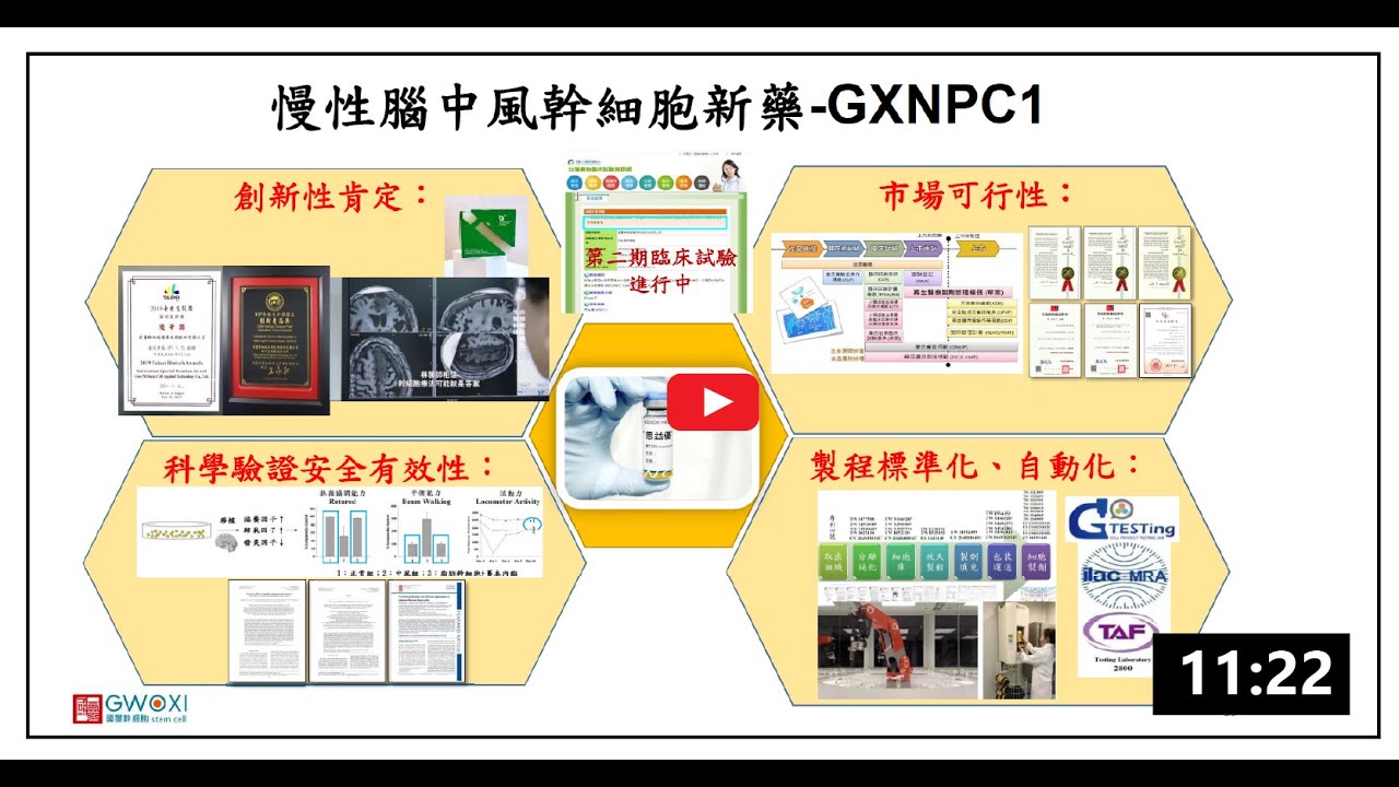 目前GXNPC1已進入臨床試驗三期申請階段,並同步規劃申請再生雙法中的條件附款,期許能盡速為腦中風患者提供新的治療選擇。未來,國璽將持續推動再生醫學技術發展,透過創新細胞治療方案,提升腦中風患者的生活品質,為全球腦中風治療領域開創新局。
